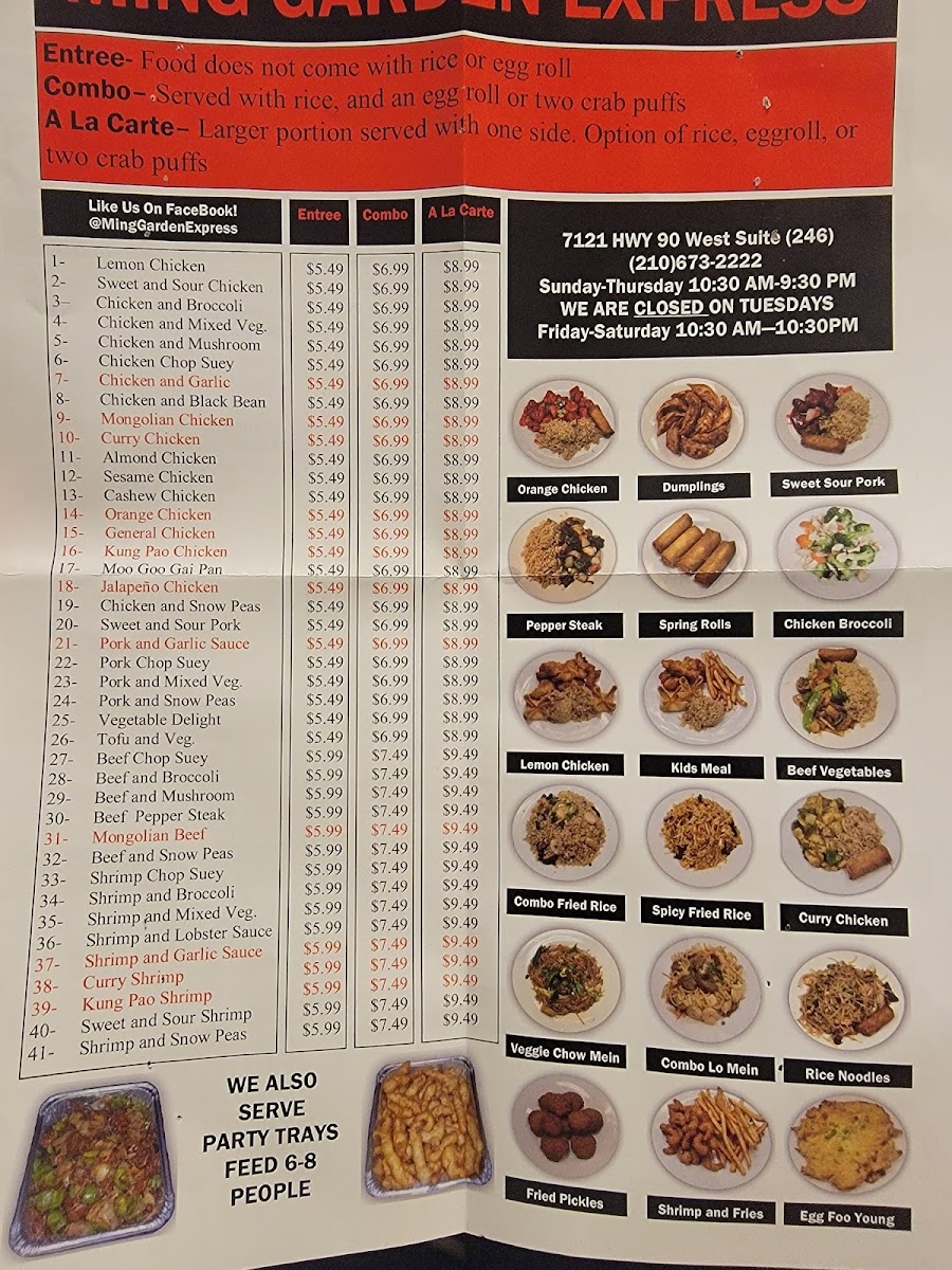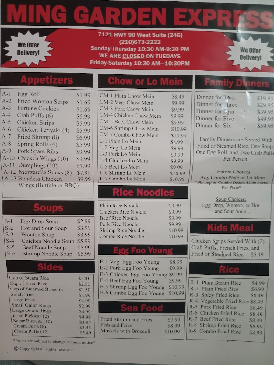 Welcome to Ming Garden Express, a delightful hidden gem located at 7121 W US Hwy 90 in the vibrant city of San Antonio, Texas. This budget-friendly eatery, reachable at +1 210-673-2222, has garnered a reputation for offering satisfying and flavourful dishes without breaking the bank. With the testimony of numerous satisfied customers, it's clear that Ming Garden Express prioritizes quality, taste, and service.